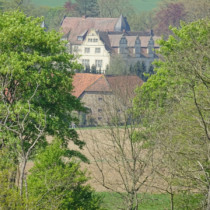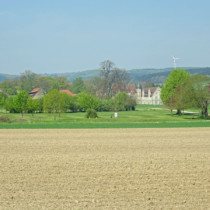 Der E1 führt über den Golfplatz des Golfclubs Hameln. Vor tieffliegenden Bällen wird gewarnt. Der Golfplatz erstreckt sich bis zum Schloss Schwöbber, der Wanderweg führt jedoch nicht direkt daran vorbei. Einen Abstecher zum Schloss habe ich nicht unternommen, dafür habe ich ja mein Zoomobjektiv.