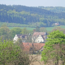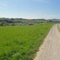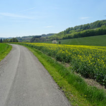 nur Vogelgezwitscher, es riecht nach Frühling. Unten nach der Linkskurve ist der Ortseingang von Dehrenberg.