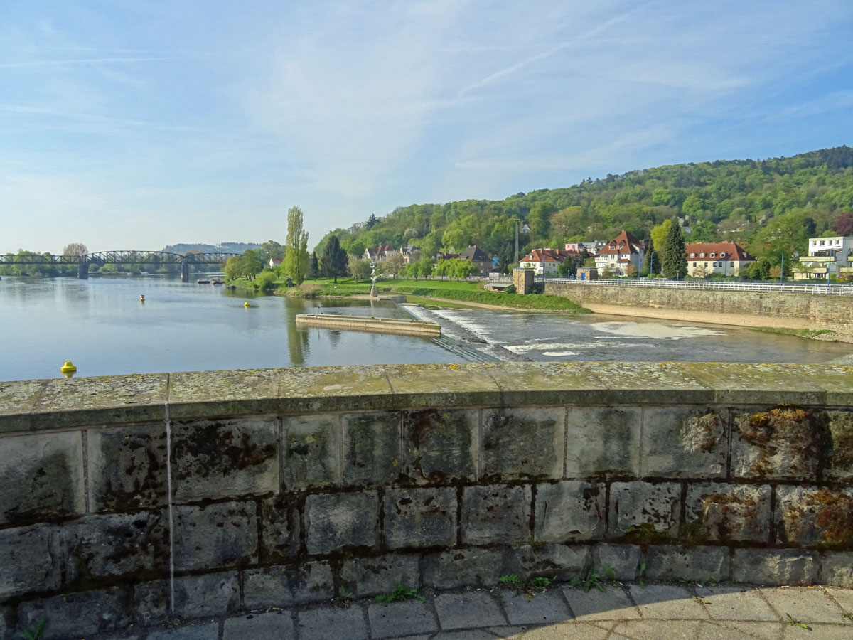 Ein Blick von der Münsterbrücke auf die Weser. Links die Brücke und das Münster, rechts der Klüt.